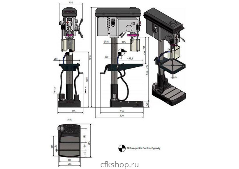 Усиленный сверлильный станок с мощным бесщеточным приводом Optimum
