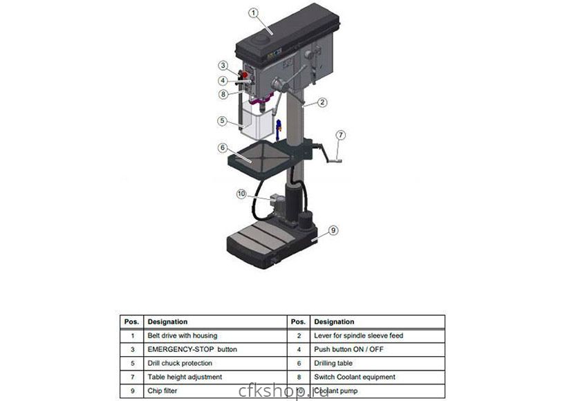 охлаждающей жидкости. - Толстостенная чугунная колонна обеспечивает защиту от вибраций и высокую
