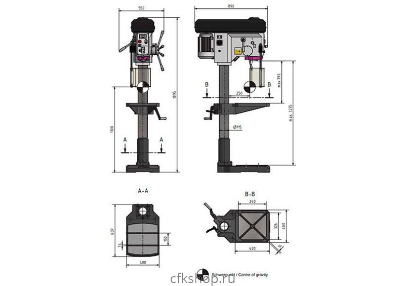 - Толстостенная чугунная колонна обеспечивает защиту от вибраций и высокую устойчивость.