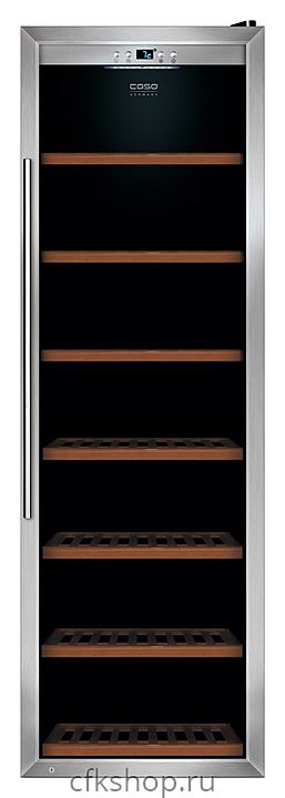 Винный шкаф CASO WineSafe 192 предназначен для охлаждения и длительного хранения бутилированного и разливного вина в частных домах, квартирах, отелях и офисах. Модель оснащена панелью управления c LED-дисплеем, показывающим текущую температуру, и 6 деревянными выдвижными полками. Дверная рама и ручка выполнены из нержавеющей стали, дверца - из стекла с ультрафиолетовым фильтром.