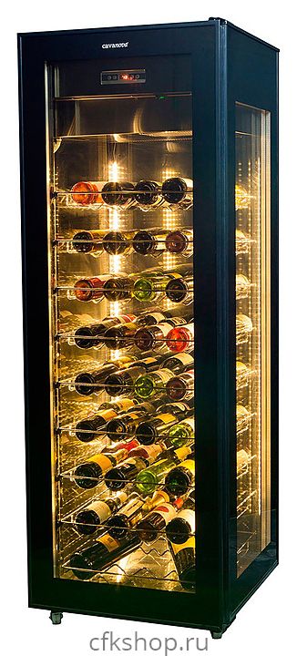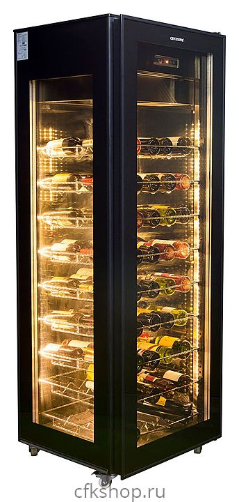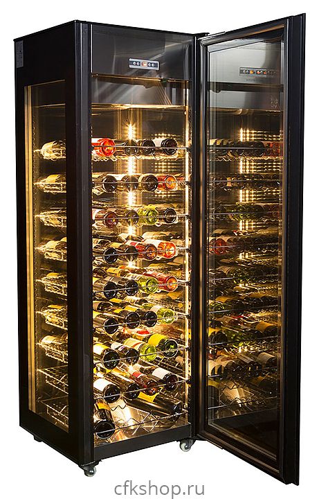 Винный шкаф Cavanova CVVT400 создает оптимальные условия для сохранения всех вкусовых свойств разливного вина в барах, ресторанах, специализированных магазинах, частных домах или квартирах. Модель оснащена светодиодной подсветкой мягкого белого цвета. Корпус выполнен из черного металла, дверь и стенки - из двойного тонированного стеклопакета с УФ-фильтром, полки - из хромированного металла.
