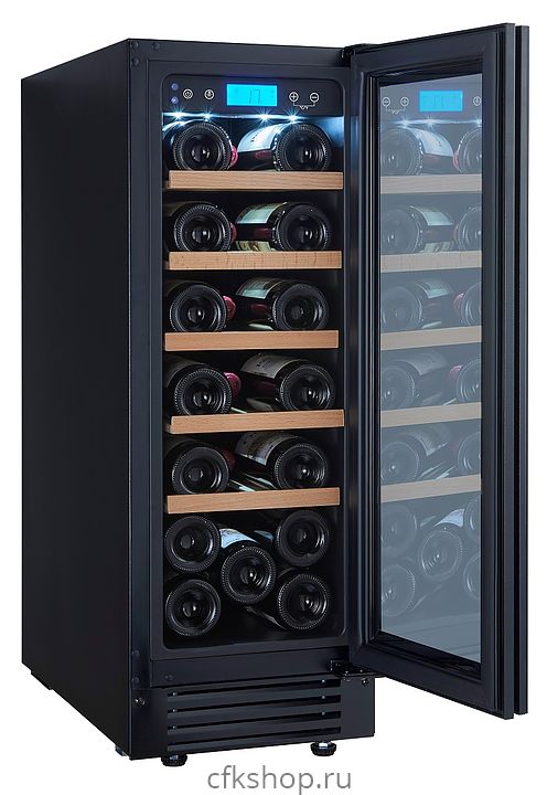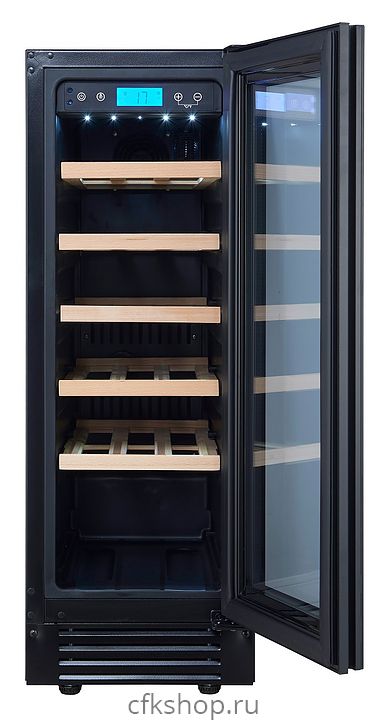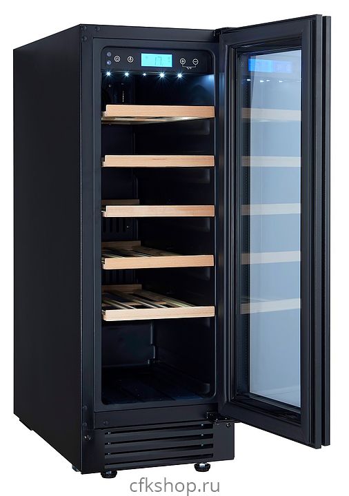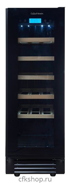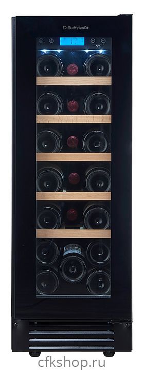 Встраиваемый винный шкаф Cellar Private CP020-1TBH предназначен для хранения при оптимальных условиях бутилированного вина различных сортов в барах, ресторанах, специализированных магазинах, подсобных складских помещениях, а также в домашних условиях. Модель оснащена 5 съемными полками, распашной перенавешиваемой дверью с ручкой, встроенной в боковую поверхность двери, и цифровым дисплеем, показывающим температуру в камере. Корпус выполнен из металла с покрытием черного цвета, дверь - из двойного тонированного стекла с защитой от УФ-излучения, дверная рама - из черного металла, полки - из дерева.