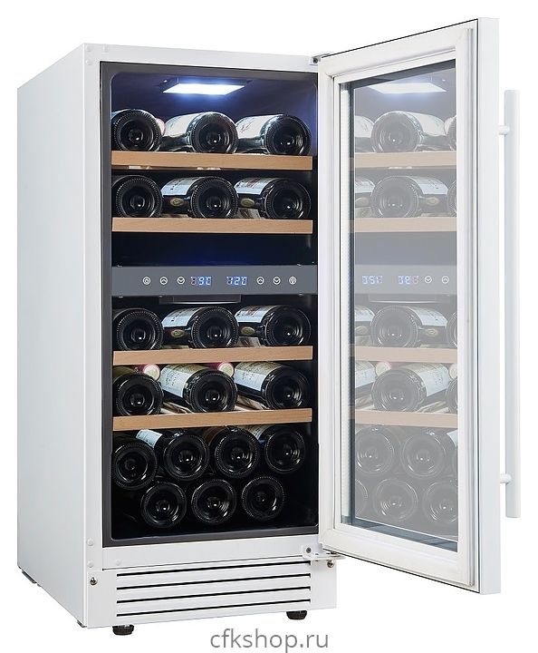 Встраиваемый винный шкаф Cellar Private CP027-2TW предназначен для хранения при оптимальных условиях бутилированного вина различных сортов в барах, ресторанах, специализированных магазинах, подсобных складских помещениях, а также в домашних условиях. Модель оснащена холодильной камерой с 2 температурными зонами, 4 съемными полками, распашной перенавешиваемой дверью с длинной вертикальной рукояткой и прозрачным тонированным обзорным стеклом, а также сенсорной панелью управления с 2 цифровыми дисплеями внутри камеры. Корпус и рукоятка выполнены из металла с покрытием белого цвета, рама двери – из пластика, полки – из массива древесины.