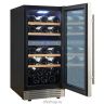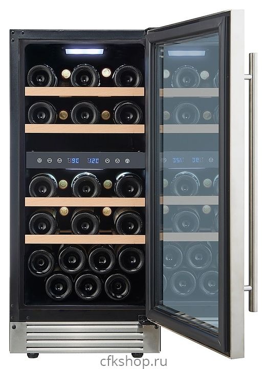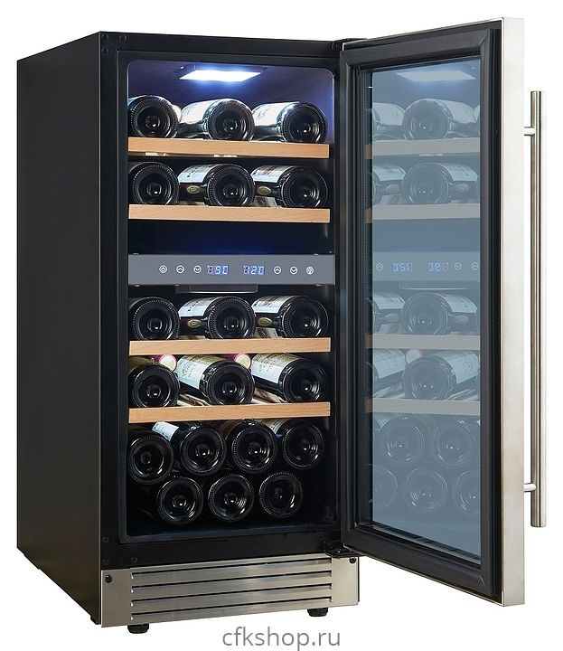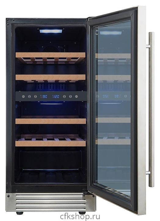 Встраиваемый винный шкаф Cellar Private CP027-2T предназначен для хранения при оптимальных условиях бутилированного вина различных сортов в барах, ресторанах, специализированных магазинах, подсобных складских помещениях, а также в домашних условиях. Модель оснащена холодильной камерой с 2 температурными зонами, 4 съемными полками, распашной перенавешиваемой дверью с длинной вертикальной рукояткой и прозрачным тонированным обзорным стеклом, а также сенсорной панелью управления с 2 цифровыми дисплеями внутри камеры. Корпус выполнен из металла с покрытием черного цвета, дверь и рукоятка серебристого цвета, полки – из массива древесины.
