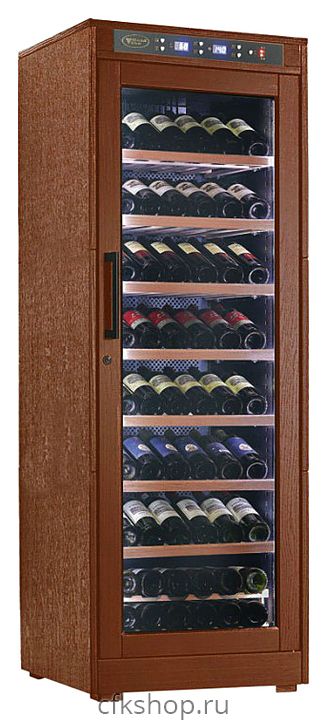 Винный шкаф Cold Vine C108-WN1 создает оптимальные условия для сохранения всех вкусовых свойств разливного вина. Модель оснащена цифровым контролем влажности, 8 деревянными полками и белой светодиодной подсветкой. Корпус классический черный и обит деревом цвета орех (шпон дуба).