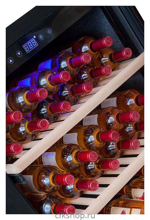 Винный шкаф Cold Vine C126-KBF2 создает оптимальные условия для сохранения всех вкусовых свойств разливного вина. Модель оснащена встроенными вентиляторами в каждой зоне, 7 деревянными полками без лакового покрытия на металлических направляющих (все, кроме нижней) и голубой светодиодной подсветкой. Дверь в стальной окантовке выполнена из прозрачного двойного стекла с УФ-фильтром.