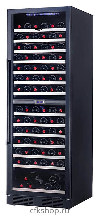 Винный шкаф Cold Vine C154-KBT2 создает оптимальные условия для сохранения всех вкусовых свойств разливного вина. Модель оснащена встроенным вентилятором, 14 деревянными полками с металлической окантовкой и подсветкой. Корпус выполнен из металла, дверь - из прозрачного стекла с УФ-фильтром.