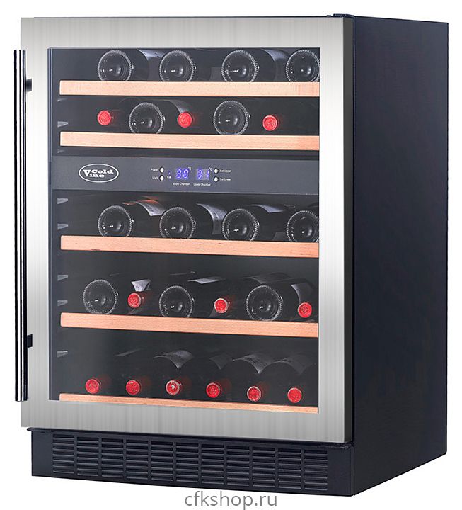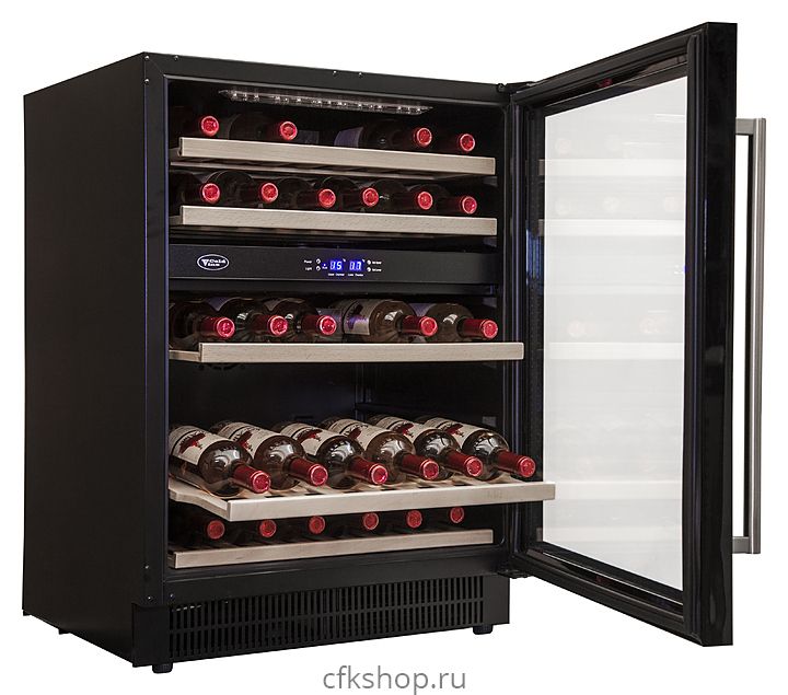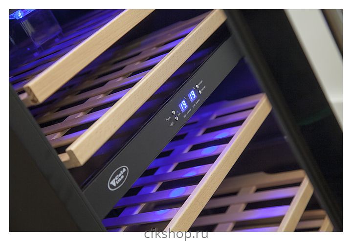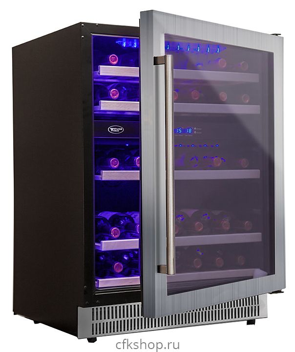 Винный шкаф Cold Vine C44-KST2 создает оптимальные условия для сохранения всех вкусовых свойств разливного вина. Модель оснащена 5 деревянными полками и синей светодиодной подсветкой. Корпус выполнен из окрашенной в черный цвет стали, дверь - из двойного стекла с УФ-фильтром, рамка двери - из бесшовной нержавеющей стали, ручка двери - из стали, полки - из массива бука.