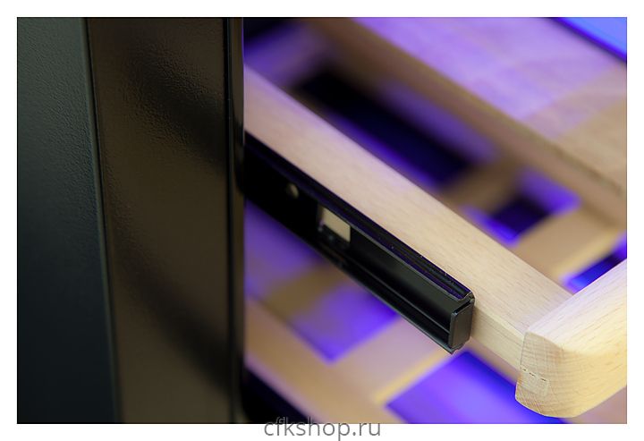 Винный шкаф Cold Vine C66-KSF2 создает оптимальные условия для сохранения всех вкусовых свойств разливного вина. Модель оснащена встроенным вентилятором, 7 деревянными полками, 6 из которых на метабоксах и голубой светодиодной подсветкой. Корпус выполнен из окрашенной в черный цвет стали, дверь со стальной рамой - из тонированного стеклопакета с защитой от УФ-излучения.