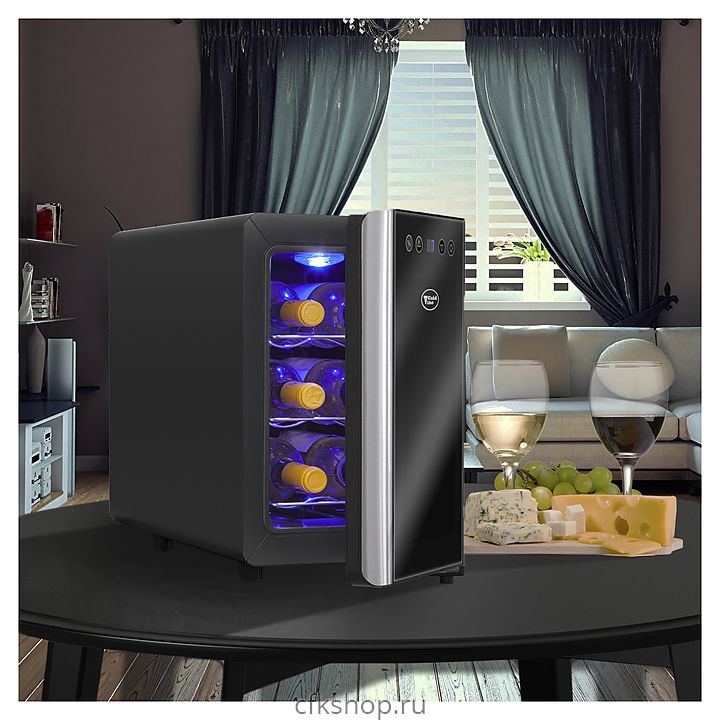 Винный шкаф Cold Vine C6-TBSF1 создает оптимальные условия для сохранения всех вкусовых свойств разливного вина. Модель оснащена встроенным вентилятором, 3 полками из хромированной стали, голубой светодиодной подсветкой и регулируемыми ножками. Корпус выполнен из окрашенной в черный цвет стали, дверь со стальной рамой по периметру - из зеркального тонированного стеклопакета с защитой от УФ-излучения.
