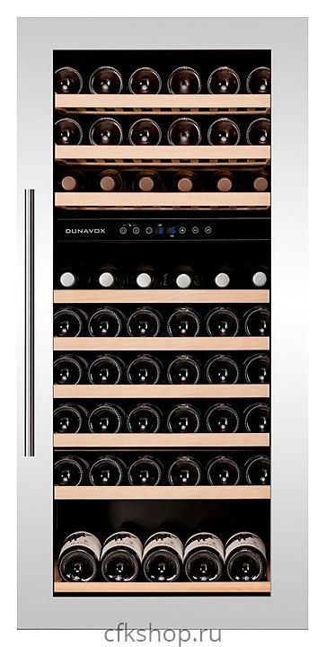Винный шкаф Dunavox DAB-89.215DW серии Built-in предназначен для демонстрации, хранения и создания оптимальных условий для сохранения всех вкусовых свойств вина в бутылках на предприятиях общественного питания, торговли, в барах, ресторанах, специализированных магазинах, частных домах или квартирах. Модель оснащена сенсорной панелью управления и LED-подсветкой синего цвета в каждой зоне. Корпус выполнен из окрашенного металла, дверь - из рамы белого цвета и тонированного стекла с защитой от ультрафиолетовых лучей, выдвижные полки - из нелакированного бука, накладная ручка двери - из нержавеющей стали.