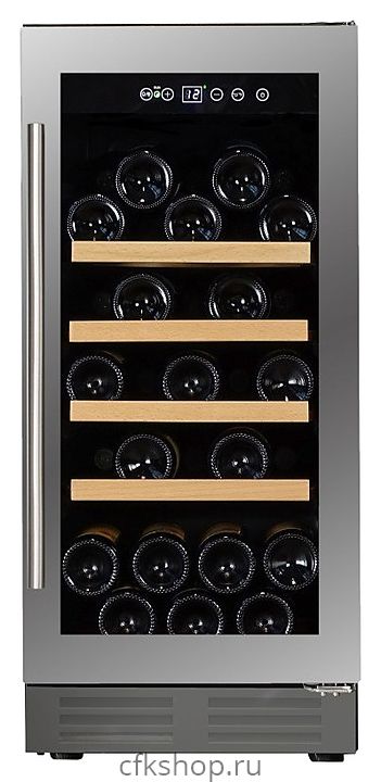 Винный шкаф Dunavox DAU-32.81SS серии Exclusive предназначен для демонстрации, хранения и создания оптимальных условий для сохранения всех вкусовых свойств вина в бутылках на предприятиях общественного питания, торговли, в барах, ресторанах, специализированных магазинах, частных домах или квартирах. Модель оснащена сенсорной панелью управления и LED-подсветкой синего цвета. Корпус выполнен из окрашенного металла, дверь - из бесшовной стальной рамы и тонированного стекла с защитой от ультрафиолетовых лучей, полки - из нелакированного бука, накладная ручка двери - из нержавеющей стали.
