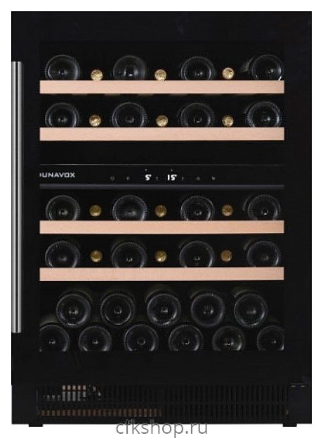 Винный шкаф Dunavox DAU-39.121DB серии Exclusive предназначен для демонстрации, хранения и создания оптимальных условий для сохранения всех вкусовых свойств вина в бутылках на предприятиях общественного питания, торговли, в барах, ресторанах, специализированных магазинах, частных домах или квартирах. Модель оснащена сенсорной панелью управления, электронным термостатом, трехцветной LED-подсветкой (Red, Blue, White), сигнализатором открытой двери и функцией шаббат. Корпус выполнен из окрашенного металла, дверь - из рамы черного цвета и тонированного стекла с защитой от ультрафиолетовых лучей, полки - из массива бука, накладная ручка двери - из нержавеющей стали.