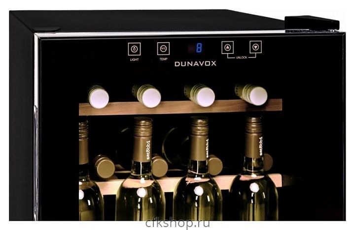 Винный шкаф Dunavox DXFH-16.46 предназначен для демонстрации, хранения и создания оптимальных условий для сохранения всех вкусовых свойств вина в бутылках на предприятиях общественного питания, торговли, в барах, ресторанах, специализированных магазинах, частных домах или квартирах. Модель оснащена сенсорной панелью управления и электронным термостатом. Корпус выполнен из окрашенного металла, дверь - из рамы черного цвета и двойного тонированного стекла с защитой от ультрафиолетовых лучей, выдвижные полки - из массива бука.