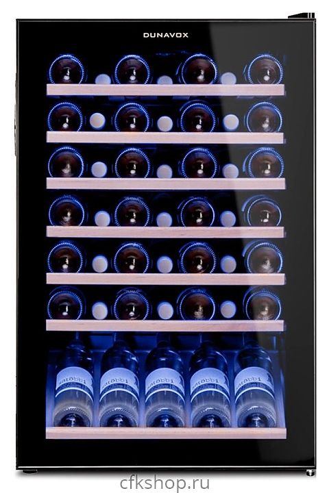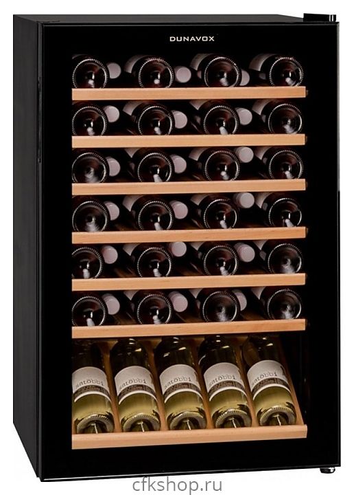 Винный шкаф Dunavox DXFH-48.130 предназначен для демонстрации, хранения и создания оптимальных условий для сохранения всех вкусовых свойств вина в бутылках на предприятиях общественного питания, торговли, в барах, ресторанах, специализированных магазинах, частных домах или квартирах. Модель оснащена механическим термостатом. Корпус выполнен из стали, дверь - из рамы черного цвета и двойного тонированного стекла с защитой от ультрафиолетовых лучей, выдвижные полки - из массива бука.