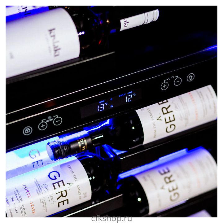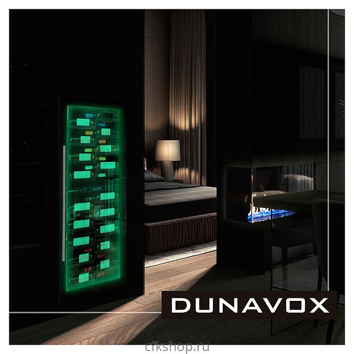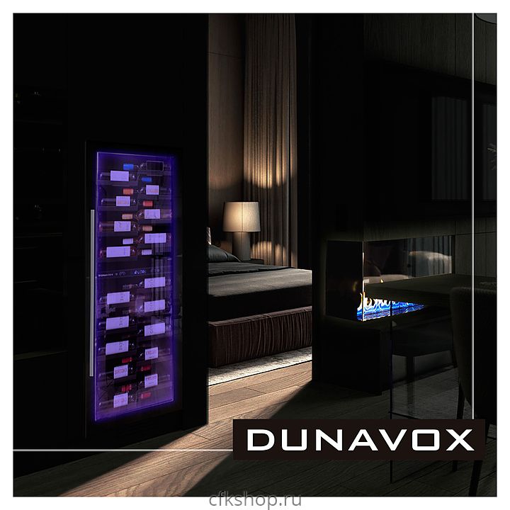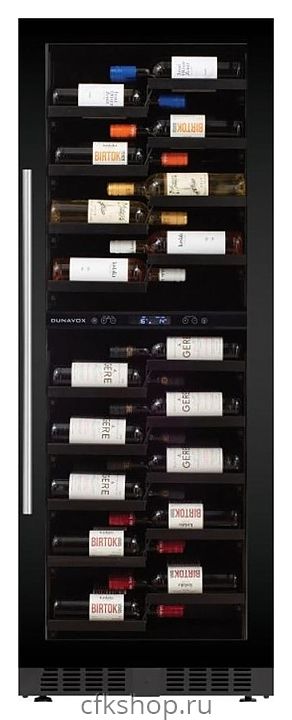 Винный шкаф Dunavox DX-104.375DB предназначен для демонстрации, хранения и создания оптимальных условий для сохранения всех вкусовых свойств вина в бутылках на предприятиях общественного питания, торговли, в барах, ресторанах, специализированных магазинах, частных домах или квартирах. Модель оснащена сенсорной панелью управления, электронным термостатом, сигнализатором открытой двери и трехцветной LED-подсветкой (Red, Green, Blue) в каждой зоне. Корпус выполнен из окрашенного металла, дверь - из рамы черного цвета и тонированного стекла с защитой от ультрафиолетовых лучей,полки - из пластифицированного металла, ручка двери - из нержавеющей стали.