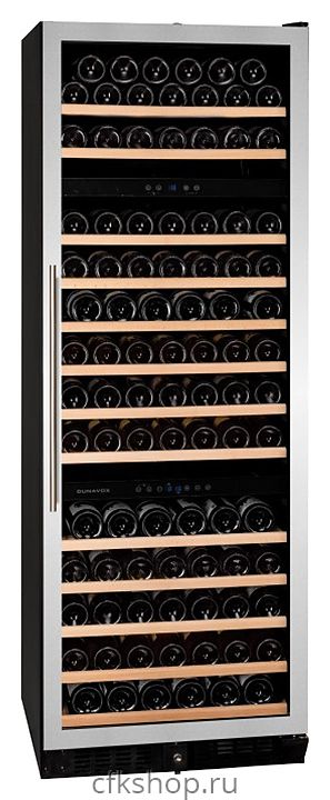 Винный шкаф Dunavox DX-170.490STSK серии Exclusive предназначен для демонстрации, хранения и создания оптимальных условий для сохранения всех вкусовых свойств вина в бутылках на предприятиях общественного питания, торговли, в барах, ресторанах, специализированных магазинах, частных домах или квартирах. Модель оснащена сенсорной панелью управления и LED-подсветкой синего цвета в каждой зоне. Корпус выполнен из окрашенного металла, дверь - из бесшовной стальной рамы и тонированного стекла с защитой от ультрафиолетовых лучей, выдвижные полки - из нелакированного бука, накладная ручка двери - из нержавеющей стали.