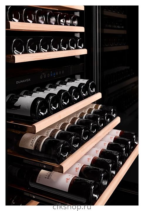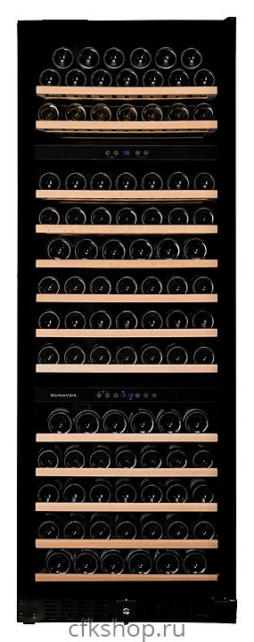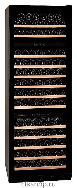 Винный шкаф Dunavox DX-170.490STSK серии Exclusive предназначен для демонстрации, хранения и создания оптимальных условий для сохранения всех вкусовых свойств вина в бутылках на предприятиях общественного питания, торговли, в барах, ресторанах, специализированных магазинах, частных домах или квартирах. Модель оснащена сенсорной панелью управления и LED-подсветкой синего цвета в каждой зоне. Корпус выполнен из окрашенного металла, дверь - из рамы черного цвета и тонированного стекла с защитой от ультрафиолетовых лучей, выдвижные полки - из нелакированного бука, накладная ручка двери - из нержавеющей стали.