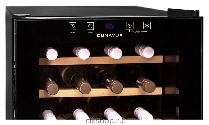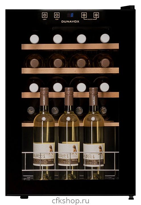 Винный шкаф Dunavox DX-20.62KF серии Home предназначен для демонстрации, хранения и создания оптимальных условий для сохранения всех вкусовых свойств вина в бутылках на предприятиях общественного питания, торговли, в барах, ресторанах, специализированных магазинах, частных домах или квартирах. Модель оснащена сенсорной панелью управления и LED-подсветкой. Корпус выполнен из окрашенного металла, дверь - из рамы черного цвета и тонированного стекла с защитой от ультрафиолетовых лучей, полки - из нелакированного бука, демонстрационная решетка - из металла.