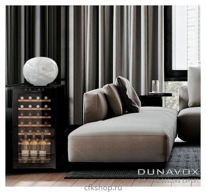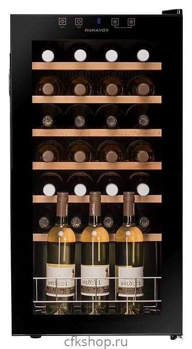 Винный шкаф Dunavox DX-28.88KF серии Home предназначен для демонстрации, хранения и создания оптимальных условий для сохранения всех вкусовых свойств вина в бутылках на предприятиях общественного питания, торговли, в барах, ресторанах, специализированных магазинах, частных домах или квартирах. Модель оснащена сенсорной панелью управления и LED-подсветкой. Корпус выполнен из окрашенного металла, дверь - из рамы черного цвета и тонированного стекла с защитой от ультрафиолетовых лучей, полки - из нелакированного бука, демонстрационная решетка - из металла.