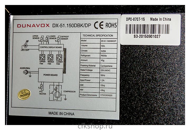Винный шкаф Dunavox DX-51.150DBK/DP
