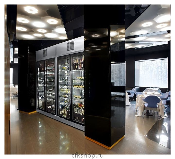- 3 стальных полки + 4 наклонных полки (до 124 бут.) K526/04