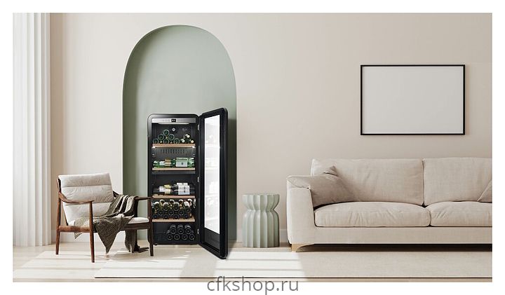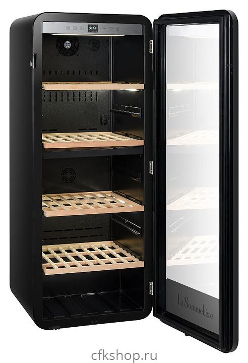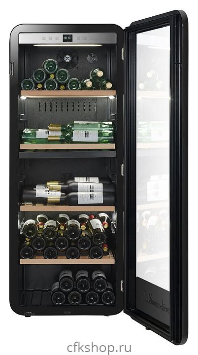 Винный шкаф La Sommeliere APOGEE145DZ предназначен для кратковременного хранения бутилированного вина в ресторанах, специализированных магазинах, подсобных складских помещениях, в частных домах или квартирах. Модель оснащена сенсорным цифровым белым дисплеем с электронным термометром, подсветкой, 2 презентационными полками «head-to-tail», 2 горизонтальными полками, дверцей с замком, 2 регулируемыми полками и 2 колесами. Дверь выполнена из тройного стеклопакета с защитой от УФ-излучений, полки - из бука.