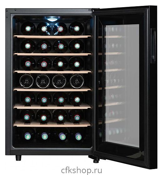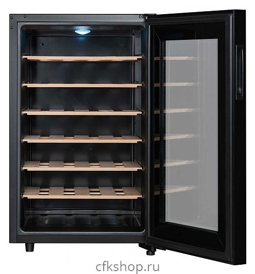 Винный шкаф La Sommeliere LS28CB серии Service предназначен для кратковременного хранения вина при определенном уровне влажности и температуры в ресторанах, специализированных магазинах, отелях, подсобных складских помещениях, в частных домах или квартирах и подготовки вина к подаче на стол. Модель оснащена сенсорным цифровым дисплеем на двери и отключаемой внутренней подсветкой. Дверь выполнена из трехслойного закаленного стекла с защитой от УФ-лучей, полки - из дерева.