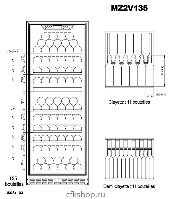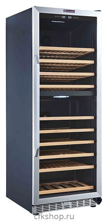 Винный шкаф La Sommeliere MZ2V135 серии Prestige создает оптимальные условия для сохранения всех вкусовых свойств разливного вина в ресторанах, специализированных магазинах, подсобных складских помещениях, в частных домах или квартирах. Оборудование оснащено дверью с рамкой из нержавеющей стали, стеклом с защитой от ультрафиолетовых лучей, 9 выдвижными и 1 фиксированной полками из бука.