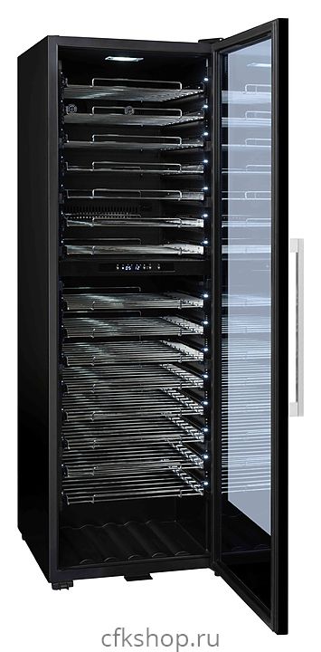 Винный шкаф La Sommeliere MZ180TZ создает оптимальные условия для сохранения всех вкусовых свойств разливного вина в ресторанах, специализированных магазинах, подсобных складских помещениях, в частных домах или квартирах. Модель оснащена электронным термостатом с сенсорным цифровым дисплеем. Полки выполнены из металла, дверь - из стекла с УФ защитой.
