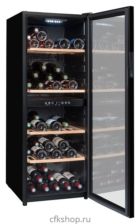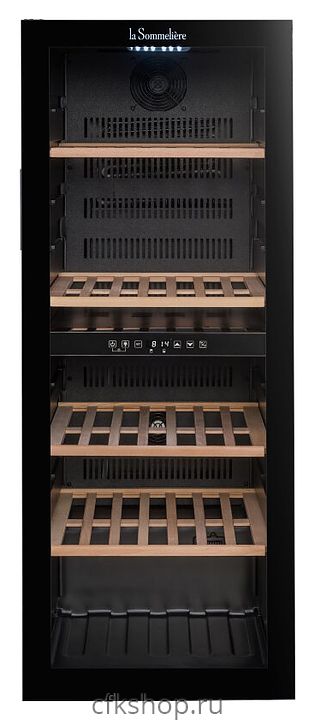 Винный шкаф La Sommeliere SLS90DZ предназначен для хранения бутилированного вина в ресторанах, специализированных магазинах, подсобных складских помещениях, в частных домах или квартирах. Модель оснащена 2 независимыми температурными отсеками, сенсорным белым цифровым дисплеем с электронным термометром, белой светодиодной подсветкой с выключателем, 4 полувидвижными полками, 2 регулируемыми ножками и 2 колесами. Дверь выполнена из двойного коричневого тройного закаленного стеклопакета с защитой от УФ-излучений, полки - из натурального дерева.