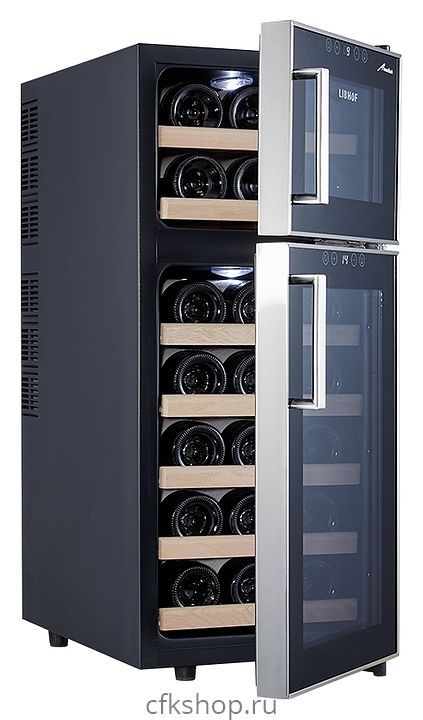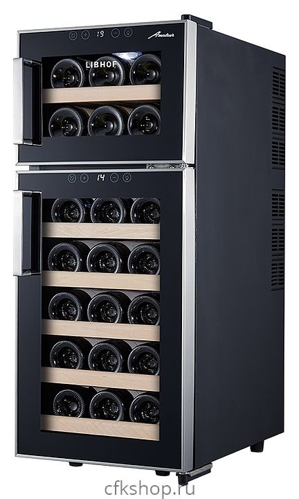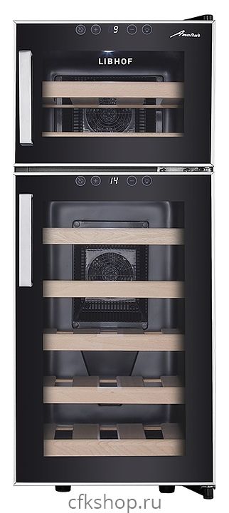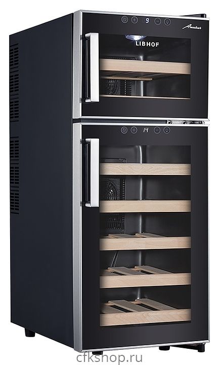 Винный шкаф Libhof Amateur ARD-21 предназначен для хранения при оптимальных условиях бутилированного вина различных сортов в барах, ресторанах, специализированных магазинах, подсобных складских помещениях, а также в домашних условиях. Модель оснащена 2 холодильными камерами с независимыми температурными зонами, 7 съемными полками, 2 распашными дверьми на внешних петлях с ручками и прозрачными обзорными стеклами, сенсорными кнопками и ЖК-дисплеем с цифровой индикацией температуры для каждой зоны. Корпус выполнен из металла, рукоятки - из нержавеющей стали, полки - из массива бука.