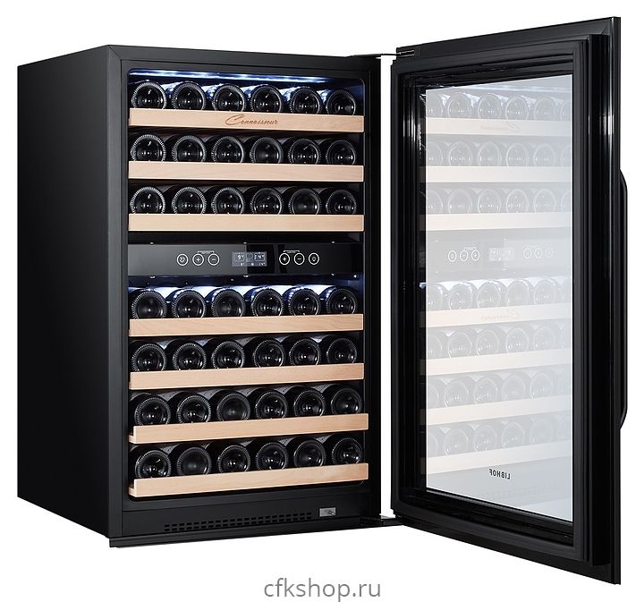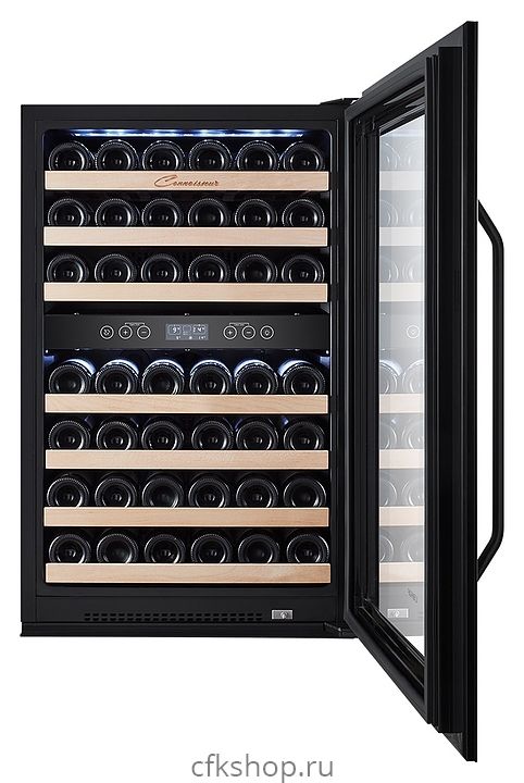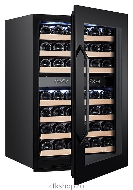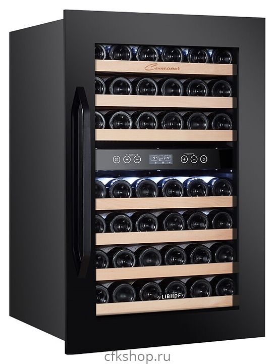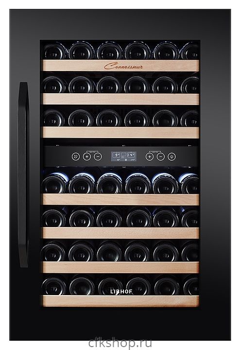 Встраиваемый винный шкаф Libhof Connoisseur CKD-42 Black предназначен для хранения при оптимальных условиях бутилированного вина различных сортов в барах, ресторанах, специализированных магазинах, подсобных складских помещениях, а также домашних условиях. Модель оснащена холодильной камерой с 2 независимыми температурными зонами, цокольной вентиляционной решеткой, распашной дверью на внутренних петлях, длинной вертикальной рукояткой, прозрачным дымчатым обзорным остеклением, внутренней сенсорной панелью управления и цифровым дисплеем. Корпус и рукоятка выполнены из металла с антикоррозийным покрытием черного цвета, полки – из массива буковой древесины.