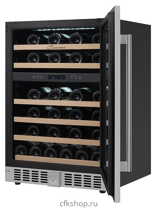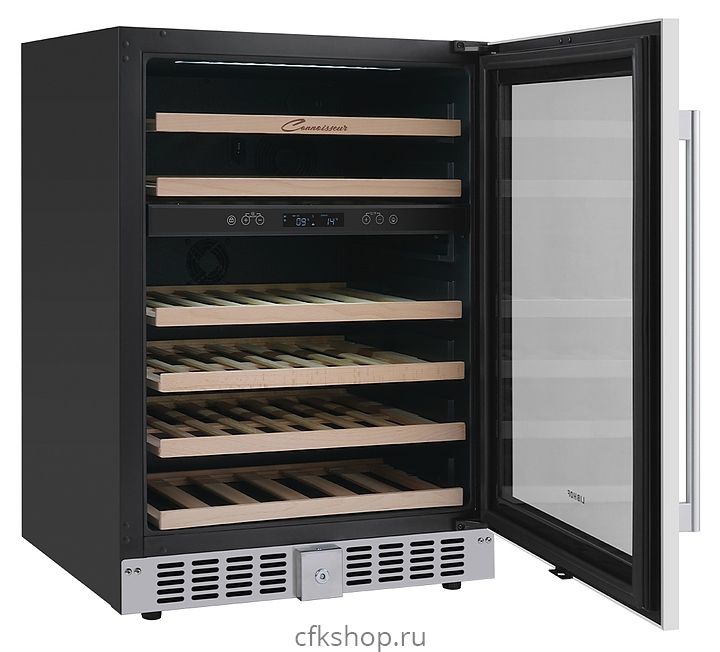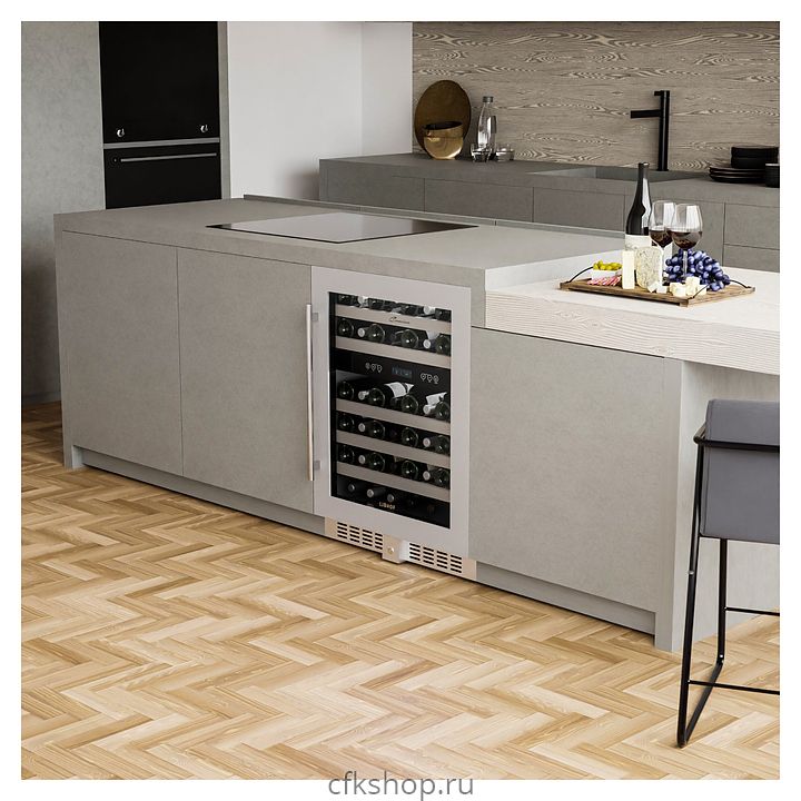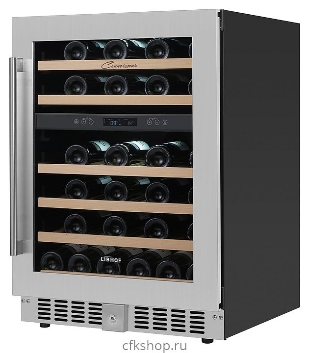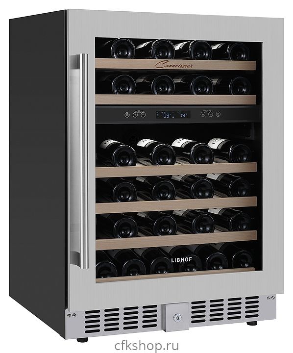 Встраиваемый винный шкаф Libhof Connoisseur CXD-46 silver предназначен для хранения при оптимальных условиях бутилированного вина различных сортов в барах, ресторанах, специализированных магазинах, подсобных складских помещениях, а также в домашних условиях. Модель оснащена холодильной камерой, 6 полками с направляющими для размещения бутылок, запираемой на ключ распашной дверью с внутренними петлями, длинной вертикальной рукояткой, прозрачным обзорным стеклом и сенсорной панелью управления с цифровым дисплеем с индикацией синего цвета. Корпус выполнен из металла с антикоррозийным покрытием фронта белого цвета, рукоятка – из металла серебристого цвета, полки – из массива буковой древесины.