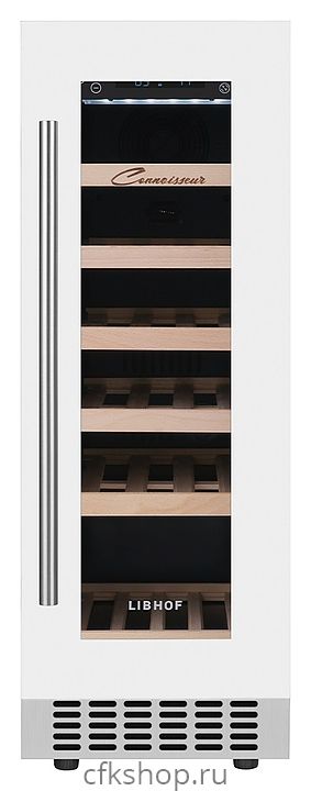 Встраиваемый винный шкаф Libhof Connoisseur CX-19 White предназначен для хранения при оптимальных условиях бутилированного вина различных сортов в барах, ресторанах, специализированных магазинах, подсобных складских помещениях, а также в домашних условиях. Модель оснащена холодильной камерой, 6 полками с направляющими для размещения бутылок, распашной дверью с внутренними петлями, длинной вертикальной рукояткой, прозрачным дымчатым обзорным стеклом и сенсорной панелью управления с цифровым дисплеем с индикацией синего цвета. Корпус выполнен из металла с антикоррозийным покрытием фронта белого цвета, рукоятка – из металла серебристого цвета, полки – из массива буковой древесины.