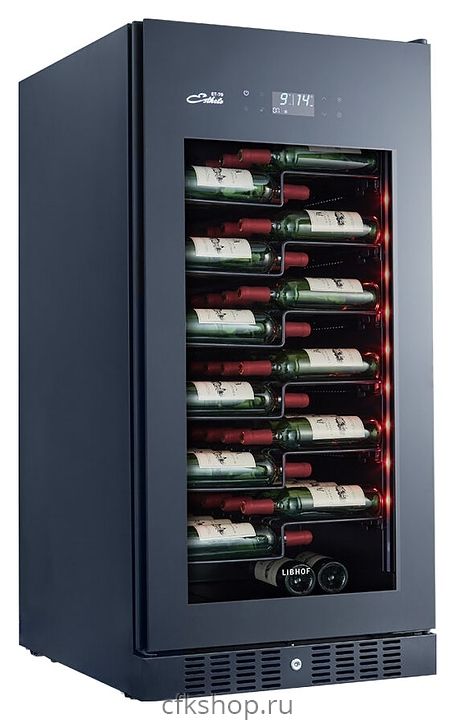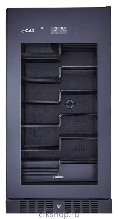 Винный шкаф Libhof Esthete ET-70 Black предназначен для хранения при оптимальных условиях бутилированного вина различных сортов в барах, ресторанах, специализированных магазинах, подсобных складских помещениях, а также домашних условиях. Модель оснащена монотемпературной холодильной камерой, съемной цокольной вентиляционной решеткой, запираемой на ключ распашной дверью на внешних петлях, скрытой интегрированной рукояткой, прозрачным дымчатым обзорным остеклением, внешней сенсорной панелью управления и цифровым дисплеем. Корпус и полки выполнены из металла с антикоррозийным покрытием черного цвета.