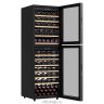 Винный шкаф Libhof Gourmet GQD-120 Black предназначен для хранения при оптимальных условиях бутилированного вина различных сортов в барах, ресторанах, специализированных магазинах, подсобных складских помещениях, а также в домашних условиях. Модель оснащена 2 холодильными камерами с запираемыми на ключ распашными дверьми на скрытых внутренних петлях, прозрачными обзорными стеклами, внутренними сенсорными панелями управления и цифровыми дисплеями с белой подсветкой индикации. Корпус выполнен из металла с антикоррозийным покрытием черного цвета, боковой профиль рамы дверей – из металла с серебристой поверхностью, полки – из массива буковой древесины.