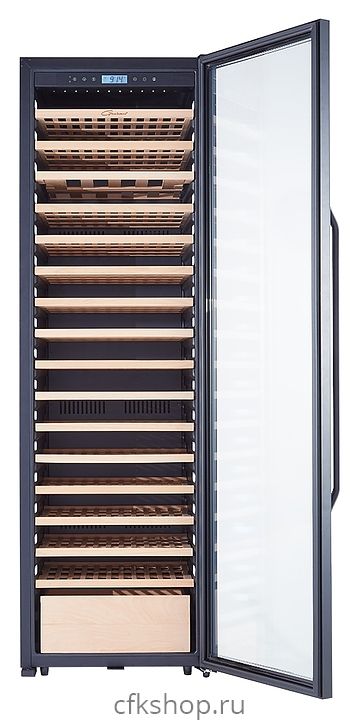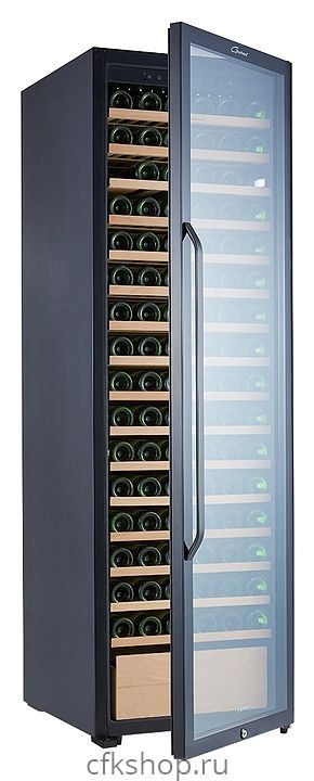 Винный шкаф Libhof Gourmet GR-183 предназначен для охлаждения вина перед подачей, длительного хранения или созревания винной коллекции в барах, ресторанах, специализированных магазинах, подсобных складских помещениях или в домашних условиях. Модель оснащена холодильной камерой с демонстрационной и 14 дисплейными полками, запираемой на ключ распашной дверью на внешних петлях с ручкой, прозрачным обзорным остеклением, сенсорной панелью управления и дисплеем с гигрометром. Корпус выполнен из металла, полки - из массива бука.