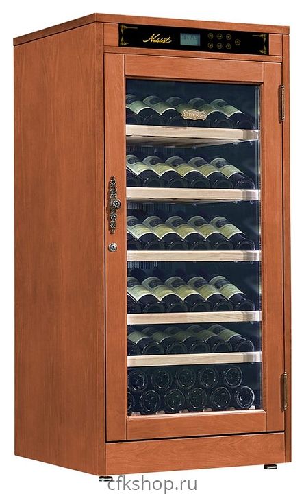 Винный шкаф Libhof Noblest NP-69 предназначен для хранения при оптимальных условиях бутилированного вина различных сортов в барах, ресторанах, специализированных магазинах, подсобных складских помещениях, а также в домашних условиях. Модель оснащена холодильной камерой с 4 демонстрационными полками, полкой с ванночкой и укороченной полкой, распашной дверью на внутренних петлях с замком, прозрачным обзорным стеклом и сенсорной панелью управления с дисплеем. Корпус выполнен из американского дуба, полки - из массива бука.