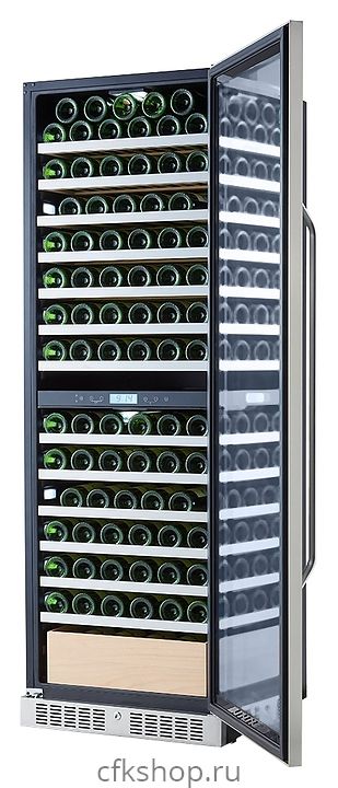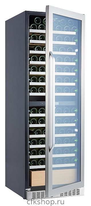 Винный шкаф Libhof Sommelier SED-161 предназначен для охлаждения вина перед подачей, длительного хранения или созревания винной коллекции в барах, ресторанах, специализированных магазинах, подсобных складских помещениях или в домашних условиях. Модель оснащена холодильной камерой с 2 температурными зонами, демонстрационной полкой, ящиком, 11 съемными полками, запираемой на ключ безшовной хромированной дверью на внешних петлях, прозрачным обзорным остеклением, сенсорной панелью управления в средней части камеры и дисплеем с гигрометром. Корпус выполнен из металла, полки - из натурального бука с хромированным торцом.