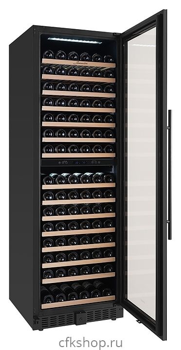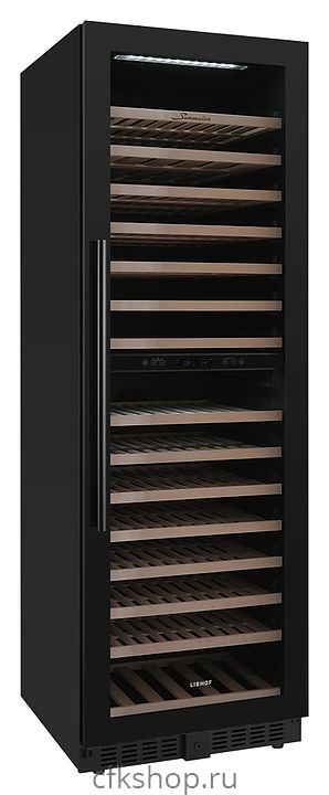 Винный шкаф Libhof Sommelier SMD-165 Silver предназначен для хранения при оптимальных условиях бутилированного вина различных сортов в барах, ресторанах, специализированных магазинах, подсобных складских помещениях, а также в домашних условиях. Модель оснащена холодильной камерой с 2 независимыми температурными зонами, запираемой на ключ распашной дверью на скрытых внутренних петлях, длинной вертикальной рукояткой, прозрачным дымчатым обзорным стеклом и внутренней сенсорной панелью управления с цифровым дисплеем. Корпус выполнен из металла с антикоррозийным покрытием черного цвета, рама двери, рукоятка и цокольная решетка – из металла с серебристой поверхностью, полки – из массива буковой древесины.
