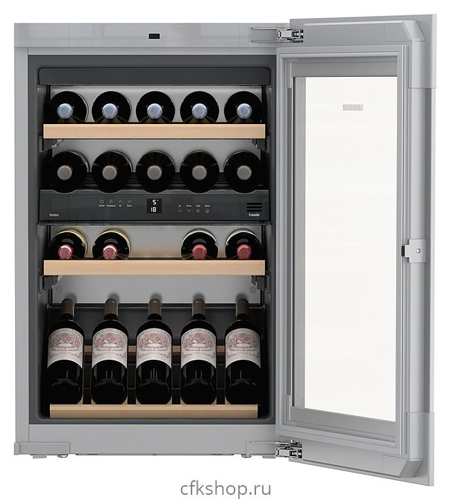 Винный шкаф Liebherr EWTgb 1683 серии Vinidor предназначен для охлаждения и длительного хранения разливного вина в частных домах, квартирах, отелях и офисах. Модель оснащена сенсорным управлением, жидкокристаллическим дисплеем и цифровой индикацией температуры. Полки выполнены из дерева.