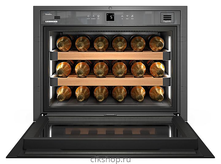 Винный шкаф Liebherr WKEgb 582 серии GrandCru предназначен для охлаждения и длительного хранения разливного вина в частных домах, квартирах, отелях и офисах. Модель оснащена сенсорным управлением, жидкокристаллическим дисплеем и цифровой индикацией температуры. Дверь выполнена из стекла, полки - из натурального дерева.