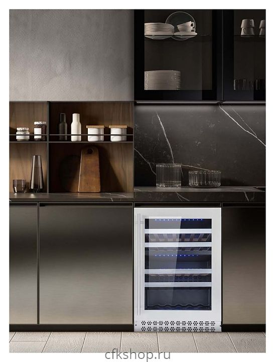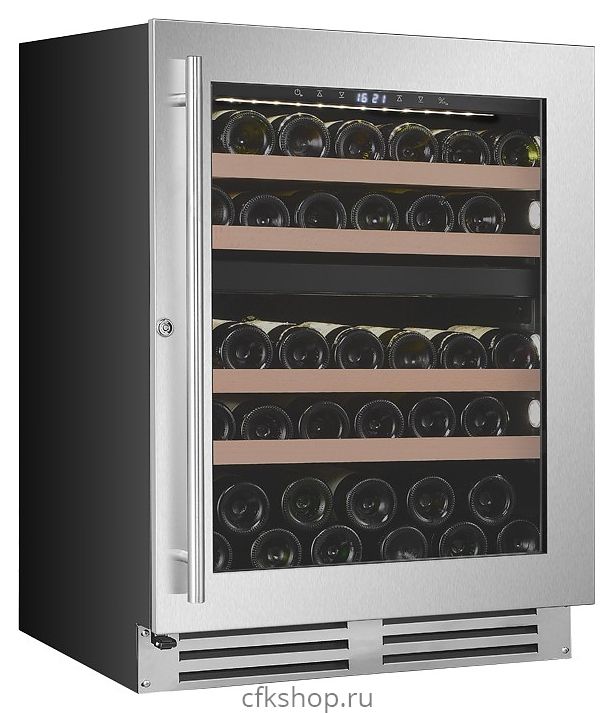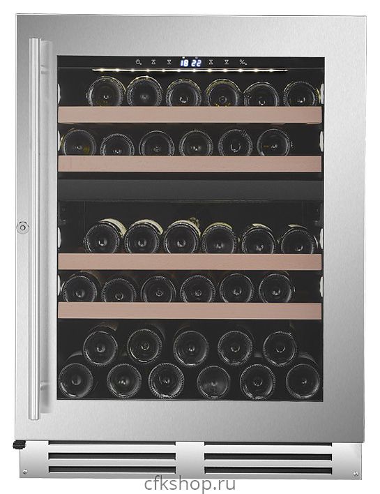 Винный шкаф MC Wine W46DS предназначен для кратковременного хранения вина при определенном уровне влажности и температуры в ресторанах, специализированных магазинах, отелях, подсобных складских помещениях, в частных домах или квартирах и подготовки вина к подаче на стол. Модель оснащена сенсорным цифровым дисплеем и циферблатом, белой светодиодной подсветкой, светодиодным индикатором температуры, регулируемыми по высоте ножками и трубчатой ручкой. Дверь выполнена из двухслойного низкоэмиссионного стекла с УФ-защитой, бесшовная рама и ручка - из нержавеющей стали, полки - из бука.