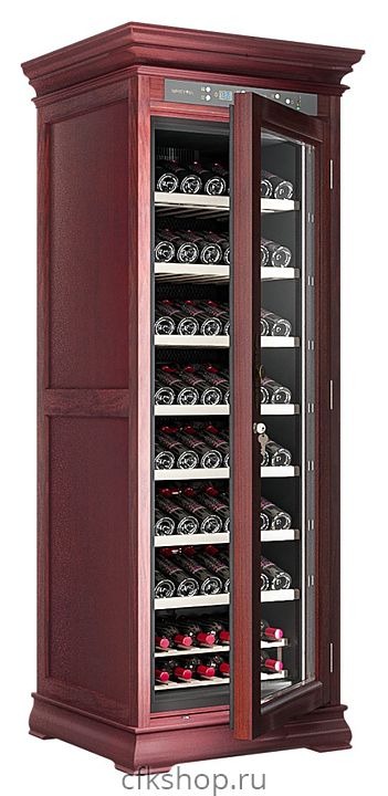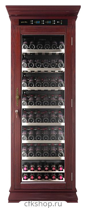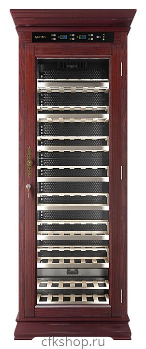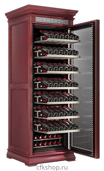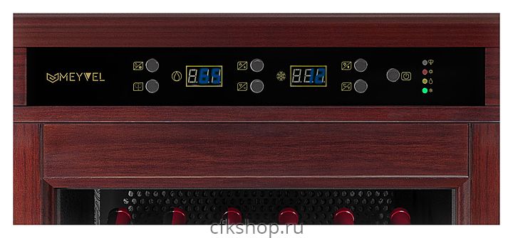 Винный шкаф MEYVEL MV108-WM1-C предназначен для демонстрации, хранения и создания оптимальных условий для сохранения всех вкусовых свойств вина в бутылках на предприятиях общественного питания, торговли, в барах, ресторанах, специализированных магазинах, частных домах или квартирах. Модель оснащена сенсорной панелью управления, электронным термостатом и светодиодной подсветкой. Корпус выполнен из обшитой красным американским дубом стали, дверь - из деревянной рамы и двойного стекла с защитой от ультрафиолетовых лучей, полки - из массива бука, ручка двери - из стали.