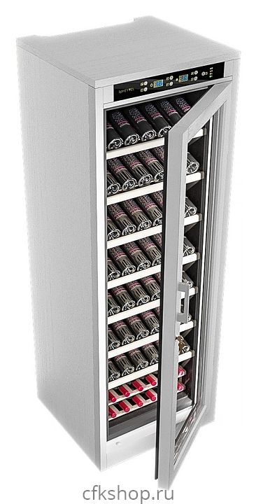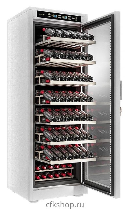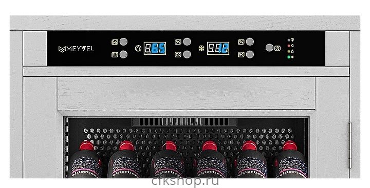 Винный шкаф MEYVEL MV108-WW1-M предназначен для демонстрации, хранения и создания оптимальных условий для сохранения всех вкусовых свойств вина в бутылках на предприятиях общественного питания, торговли, в барах, ресторанах, специализированных магазинах, частных домах или квартирах. Модель оснащена сенсорной панелью управления, электронным термостатом и светодиодной подсветкой. Корпус выполнен из обшитой деревом стали, дверь - из деревянной рамы и двойного стекла с защитой от ультрафиолетовых лучей, полки - из массива бука, ручка двери - черного цвета.