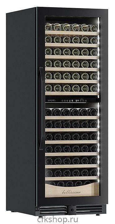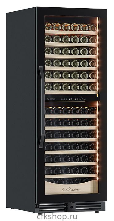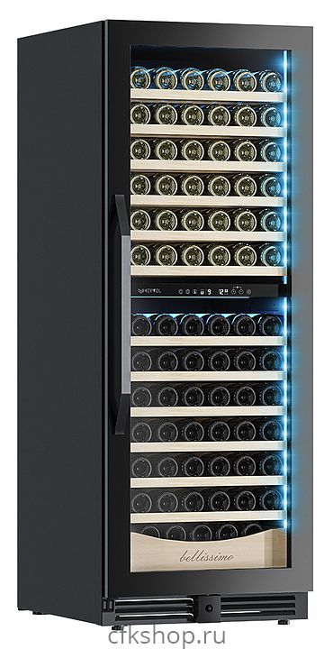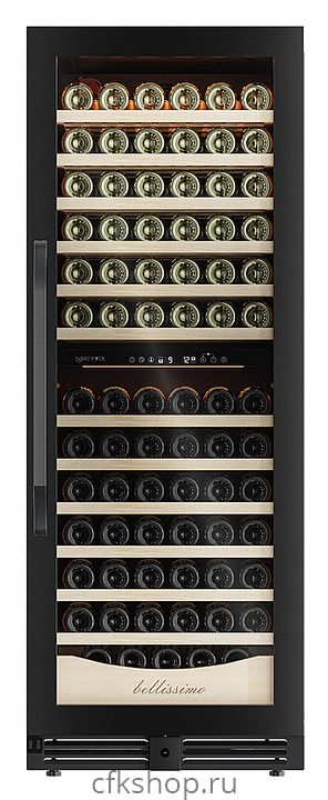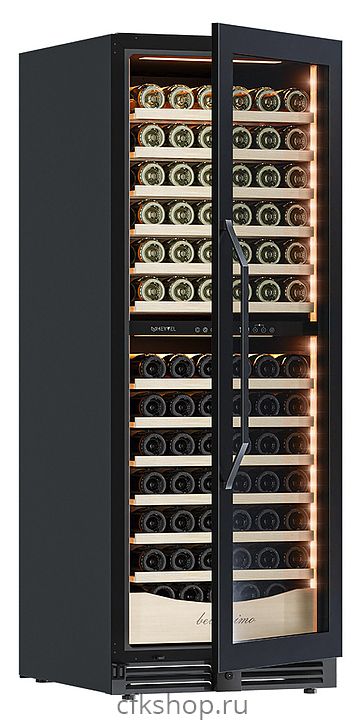 Винный шкаф MEYVEL MV141PRO-KBT2 предназначен для демонстрации, хранения и создания оптимальных условий для сохранения всех вкусовых свойств вина в бутылках на предприятиях общественного питания, торговли, в барах, ресторанах, специализированных магазинах, частных домах или квартирах. Модель оснащена сенсорной панелью управления, 2 электронными термостатами и внутренней светодиодной подсветкой. Корпус и дверная ручка выполнены из окрашенной в черный цвет стали, дверь - из тройного стекла с УФ защитой с черной рамкой, полки - из массива бука.