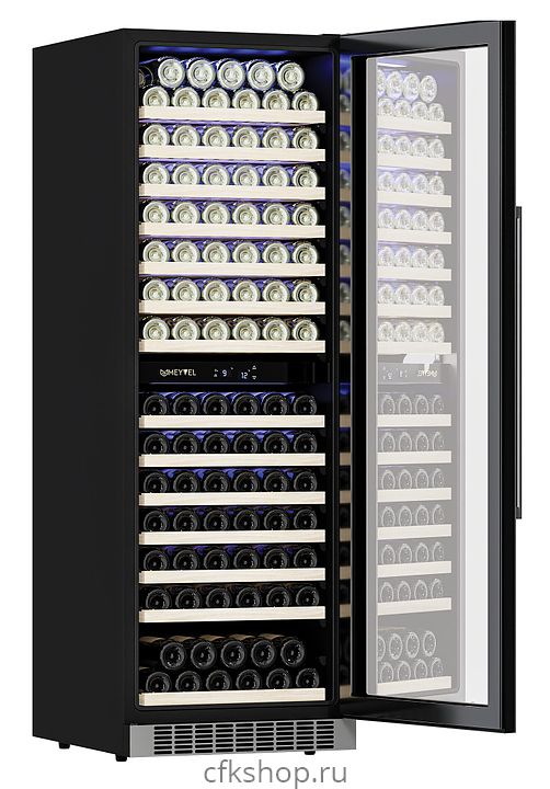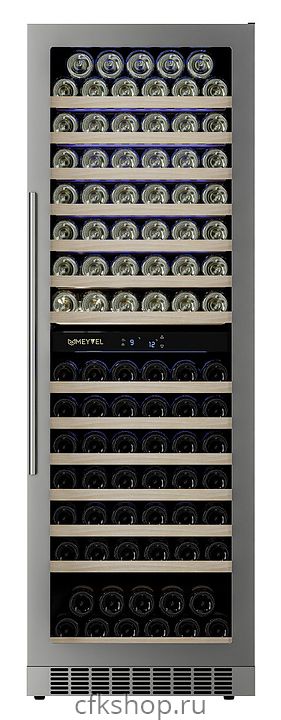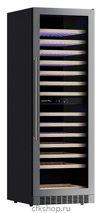 Винный шкаф MEYVEL MV163-KST2 предназначен для демонстрации, хранения и создания оптимальных условий для сохранения всех вкусовых свойств вина в бутылках на предприятиях общественного питания, торговли, в барах, ресторанах, специализированных магазинах, частных домах или квартирах. Модель оснащена сенсорной панелью управления, электронным термостатом и синей внутренней светодиодной подсветкой. Корпус и ручка выполнены из стали, дверь - из стальной рамы и двойного стекла с защитой от ультрафиолетовых лучей, полки - из массива бука.