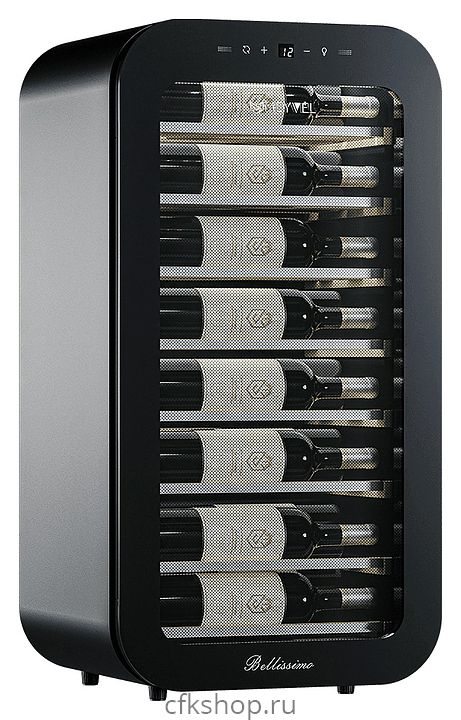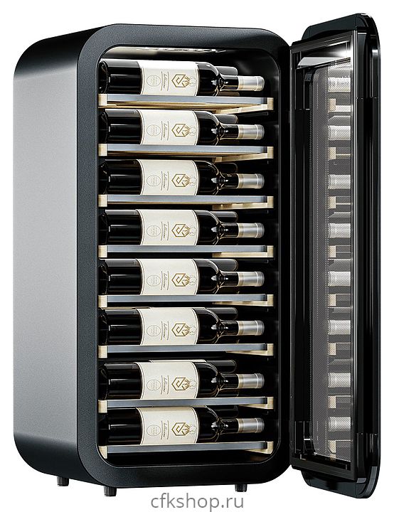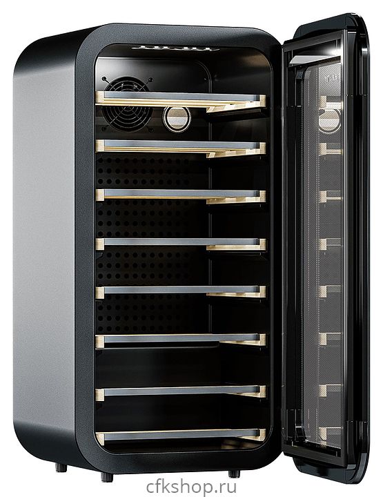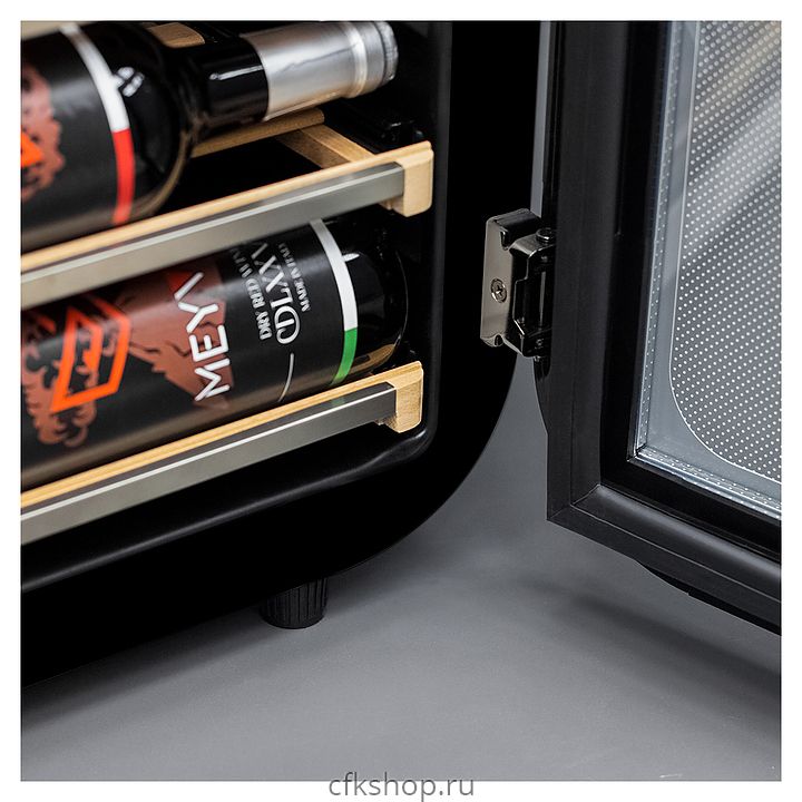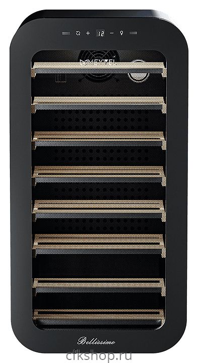 Винный шкаф MEYVEL MV22-KBF1 предназначен для демонстрации, хранения и создания оптимальных условий для сохранения всех вкусовых свойств вина в бутылках на предприятиях общественного питания, торговли, в барах, ресторанах, специализированных магазинах, частных домах или квартирах. Модель оснащена сенсорной панелью управления, электронным термостатом и белой светодиодной подсветкой. Корпус выполнен из окрашенной в черный цвет стали, дверь - из тройного стекла с защитой от ультрафиолетовых лучей, полки - из массива бука.