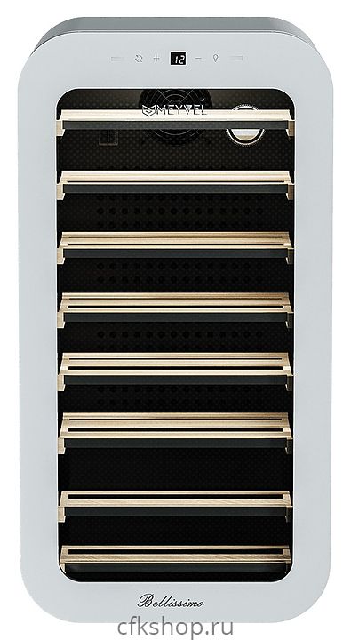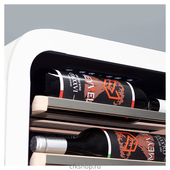 Винный шкаф MEYVEL MV22-KWF1 предназначен для демонстрации, хранения и создания оптимальных условий для сохранения всех вкусовых свойств вина в бутылках на предприятиях общественного питания, торговли, в барах, ресторанах, специализированных магазинах, частных домах или квартирах. Модель оснащена сенсорной панелью управления, электронным термостатом и белой светодиодной подсветкой. Корпус выполнен из окрашенной в белый цвет стали, дверь - из тройного стекла с защитой от ультрафиолетовых лучей, полки - из массива бука.